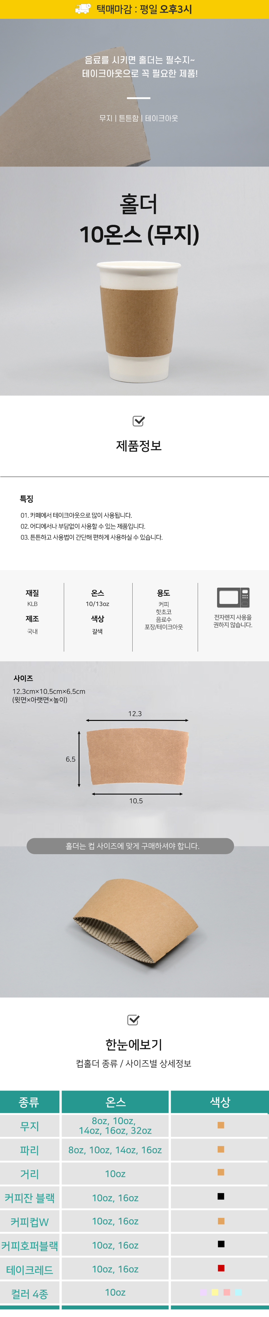 10온스 종이 컵홀더 1박스(1000개) 테이크아웃 홀더