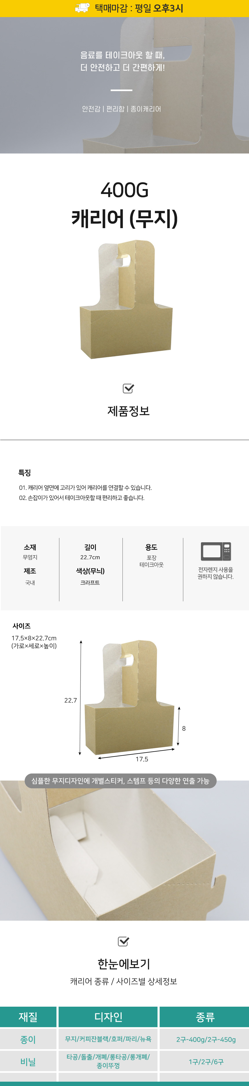 테이크아웃 종이 캐리어 400g 1박스(200개)