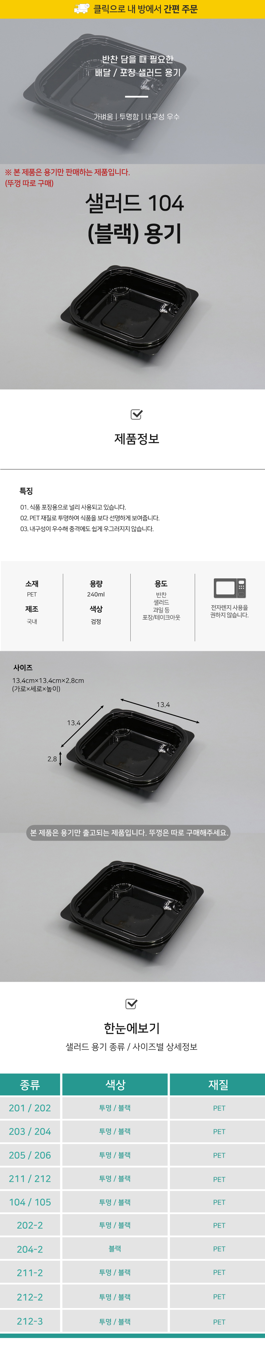 104 샐러드 용기 블랙 1박스(900개) 정사각용기 배달용기