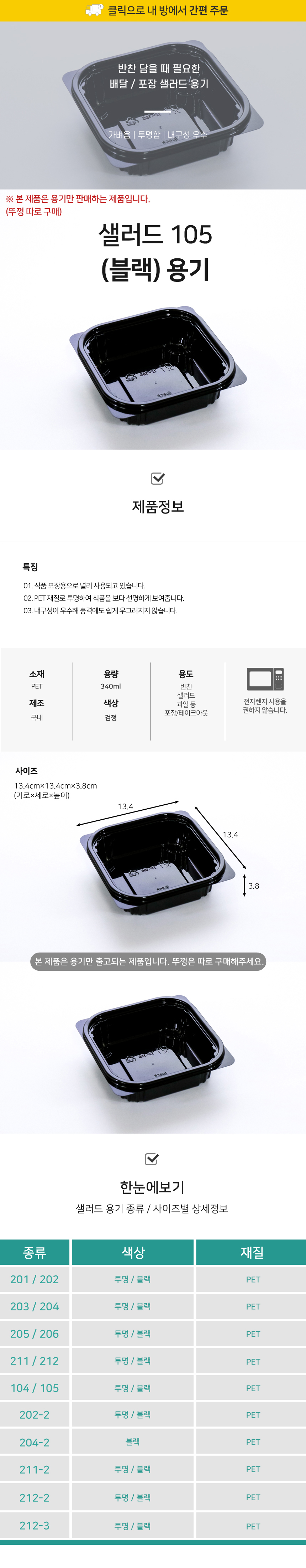 105 샐러드 용기 블랙 1박스(900개) 정사각용기 배달용기