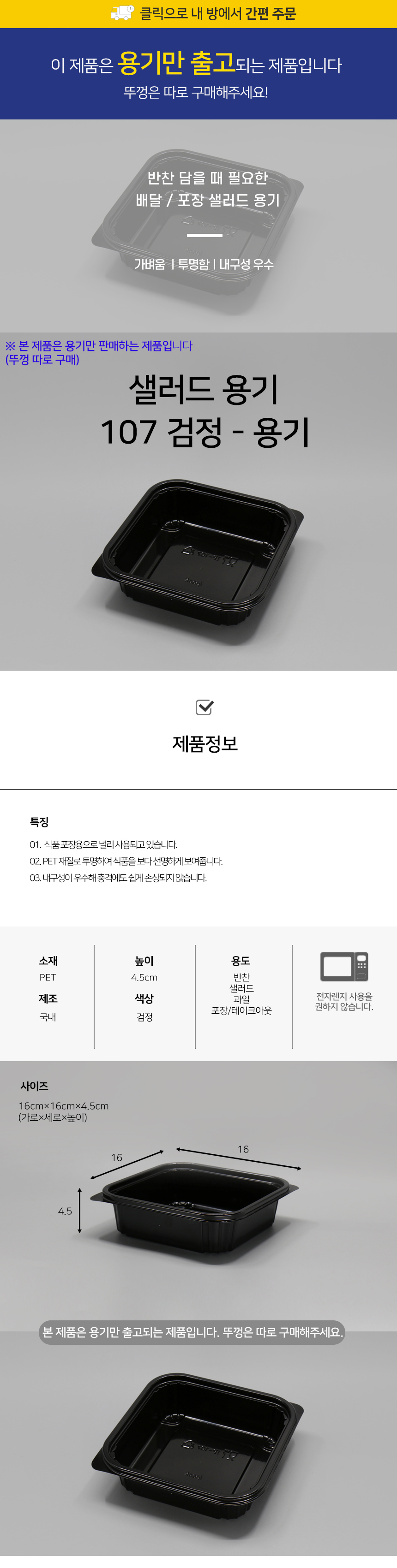 107 샐러드 용기 블랙 1박스(600개) 정사각용기 배달용기