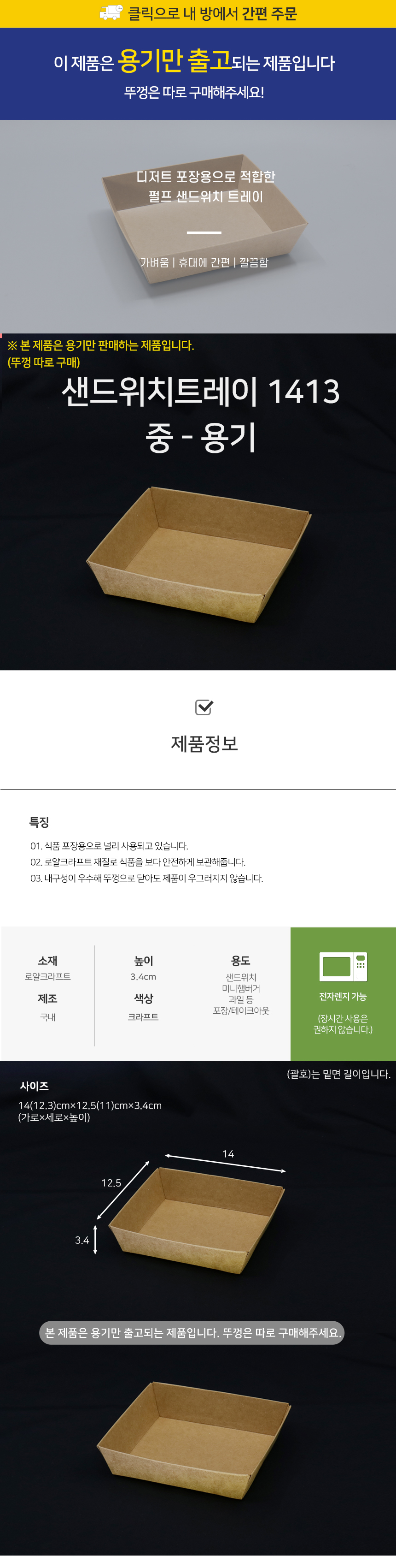 샌드위치 트레이(중) 용기 4호 1박스(500개) 종이용기 펄프용기
