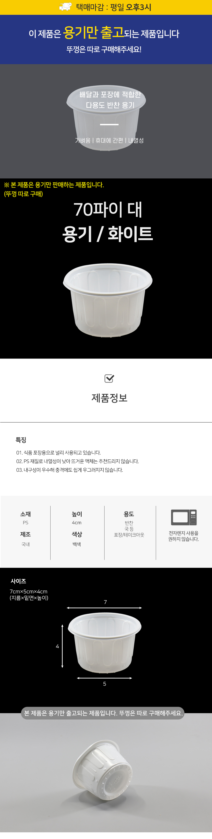 70파이 용기(대) 화이트 1박스(3000개) 장국용기 소스용기