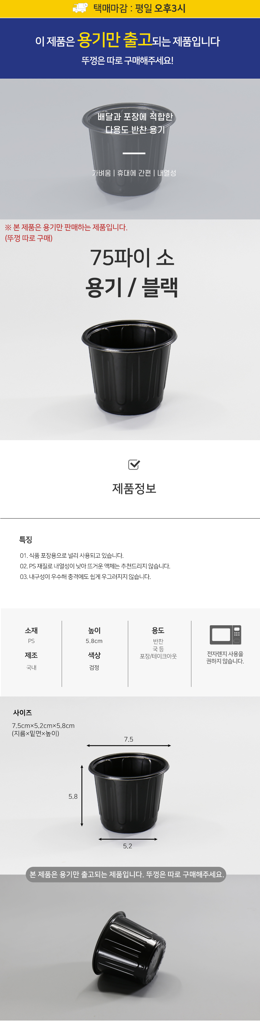 75파이 용기(소) 블랙 1박스(2000개) 장국용기 소스용기