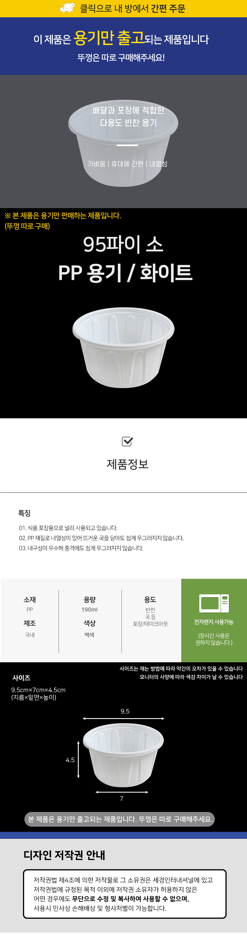 95파이 PP용기(소) 화이트 1박스(1000개) 반찬용기 소스용기