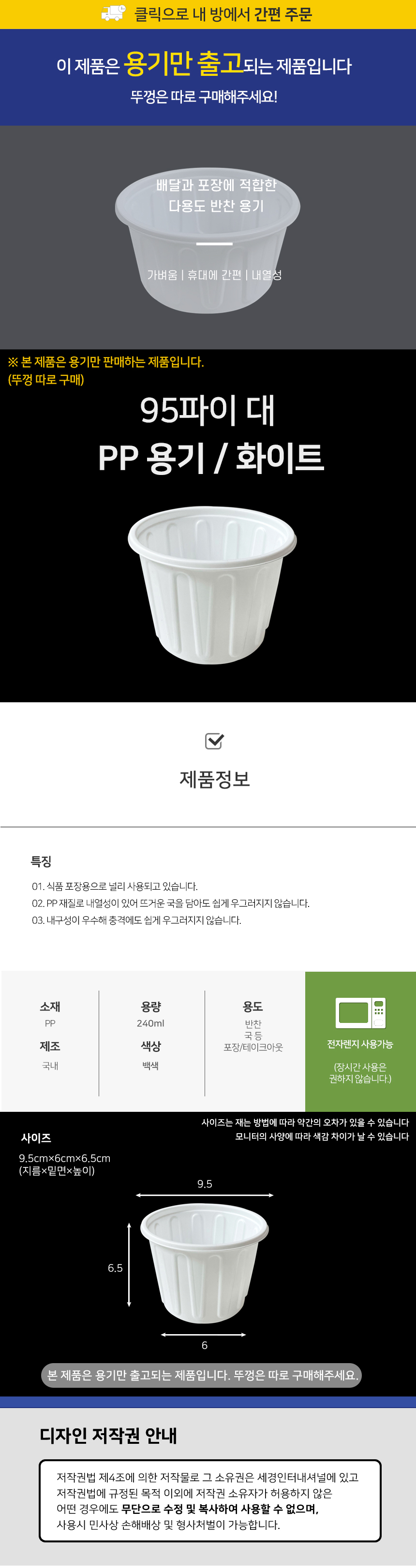 95파이 PP용기(대) 화이트 1박스(1000개) 반찬용기 소스용기