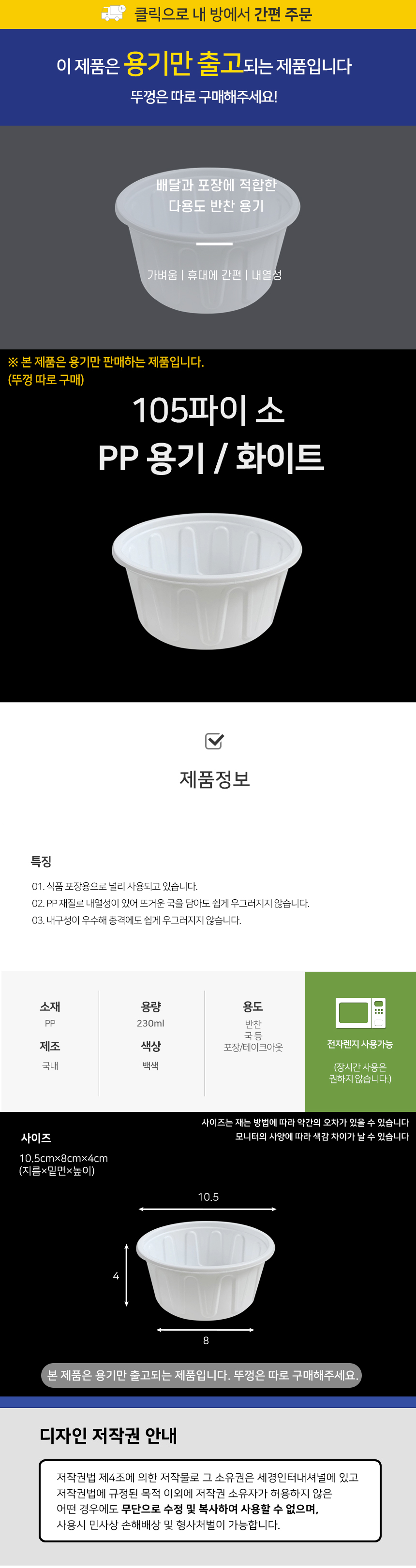 105파이 PP용기(소) 화이트 1박스(1000개) 반찬용기 소스용기