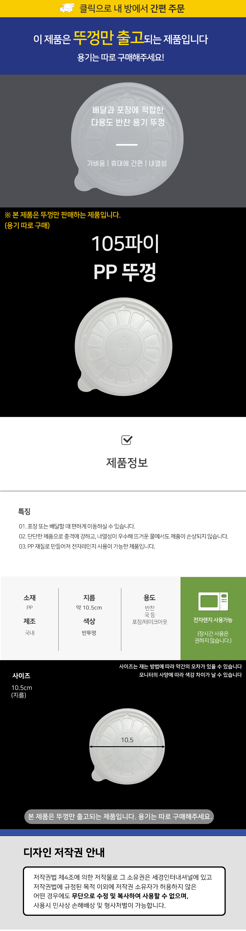 105파이 PP뚜껑 1박스(1000개) 반찬용기 소스용기