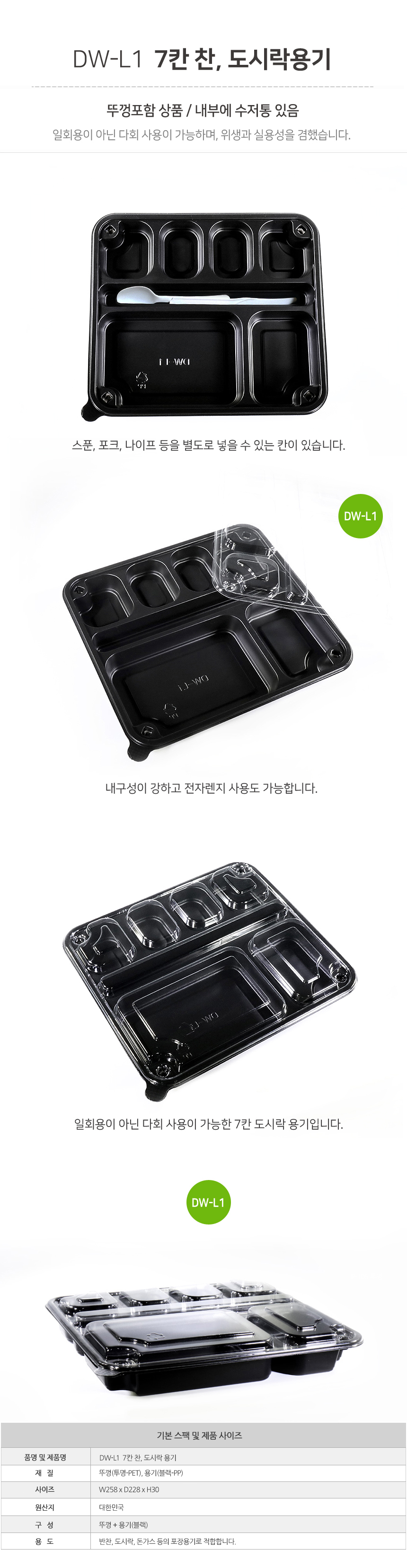 도시락L형 7칸+뚜껑 DW-L 1호 1박스(200개) 도시락용기 돈까스용기
