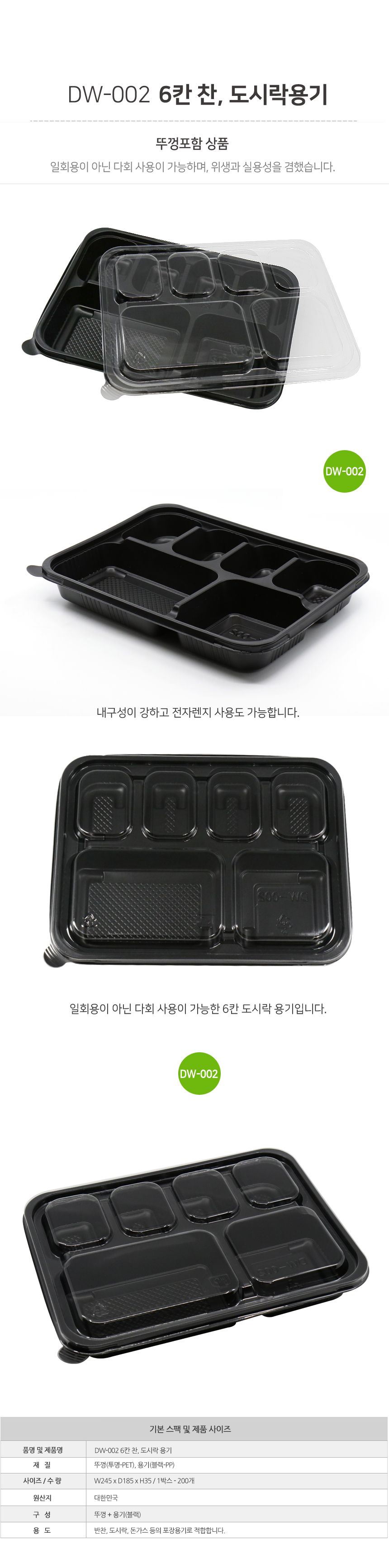 도시락 6칸+뚜껑 DW-002 1박스(200개) 도시락용기 돈까스용기