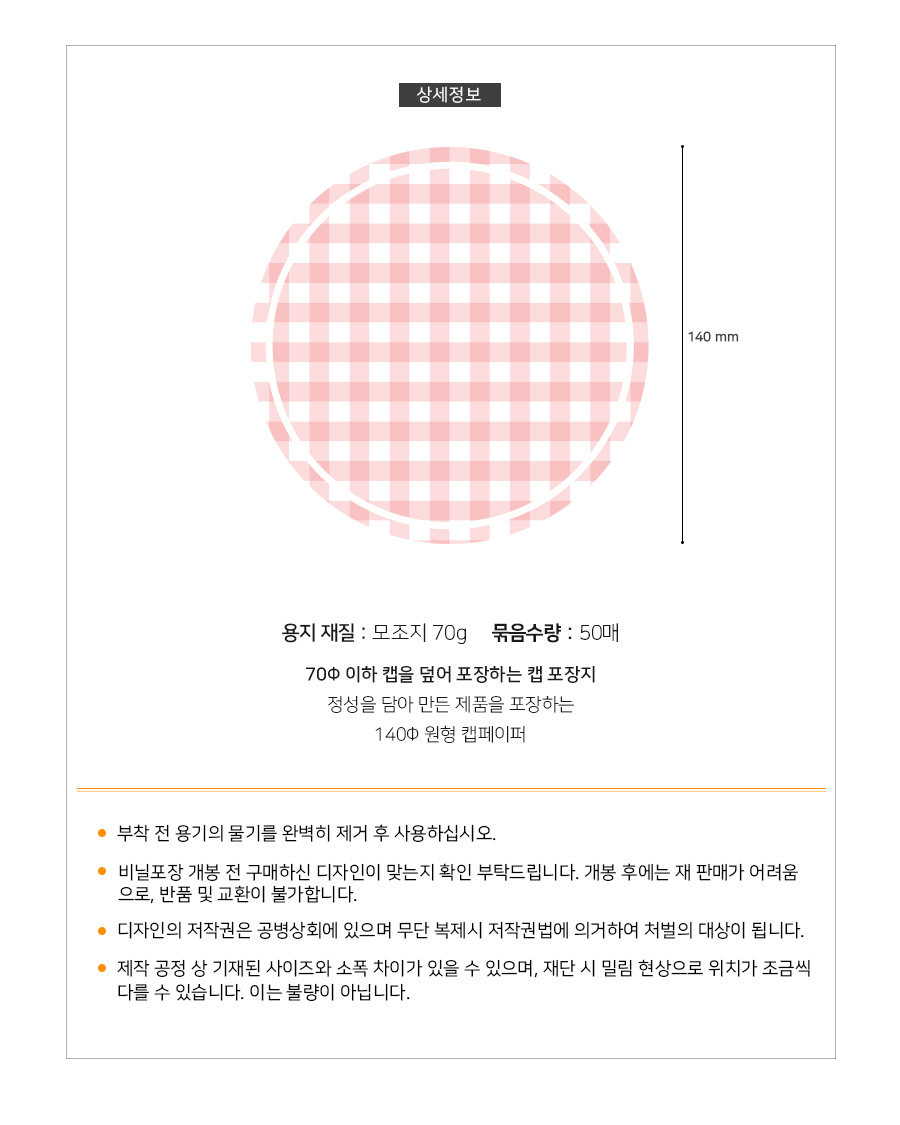 CP02 레드체크 캡페이퍼/캡포장지 (50장) 뚜껑포장