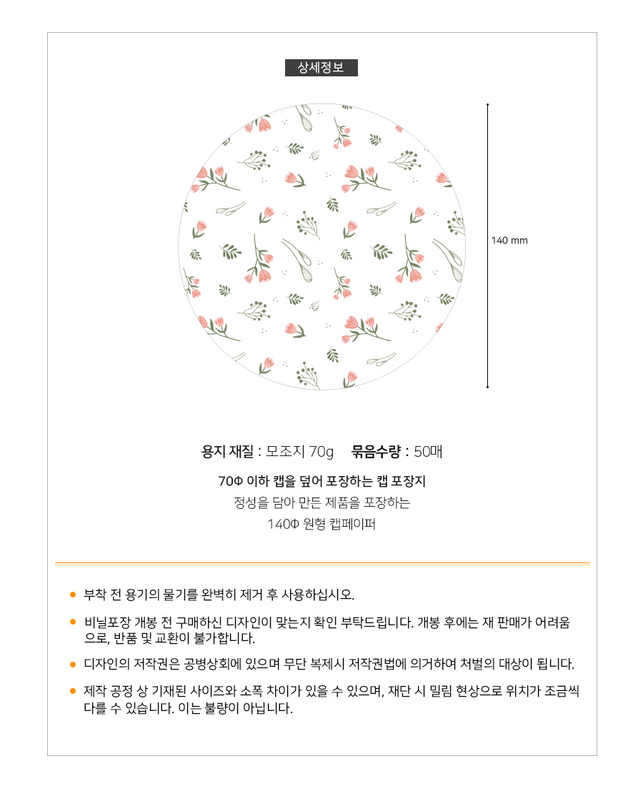 CP03 플라워A 캡페이퍼/캡포장지 (50장) 뚜껑포장