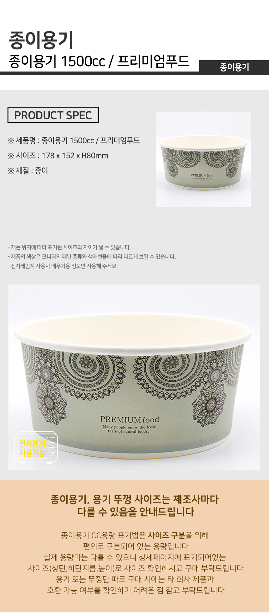 프리미엄푸드 종이용기 1500cc 1박스(360개)