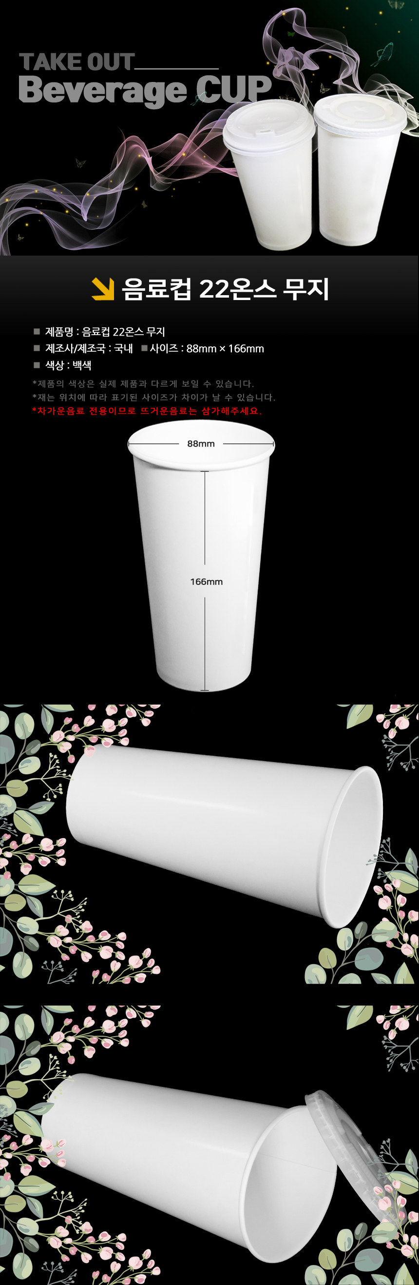 22oz 음료컵 무지 1박스(1000개)
