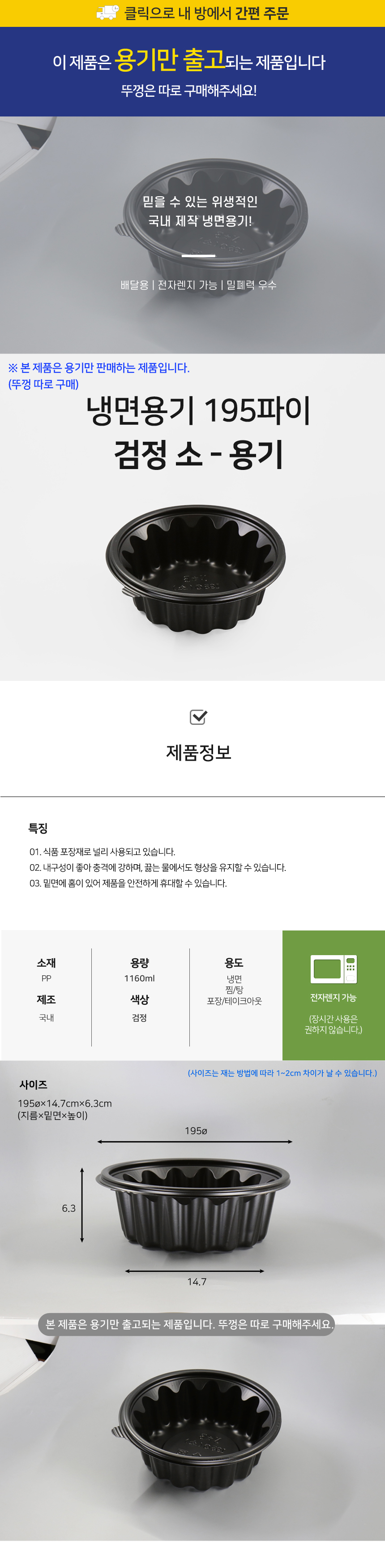 신형 냉면용기 소 195Φ 블랙 1박스(400개)