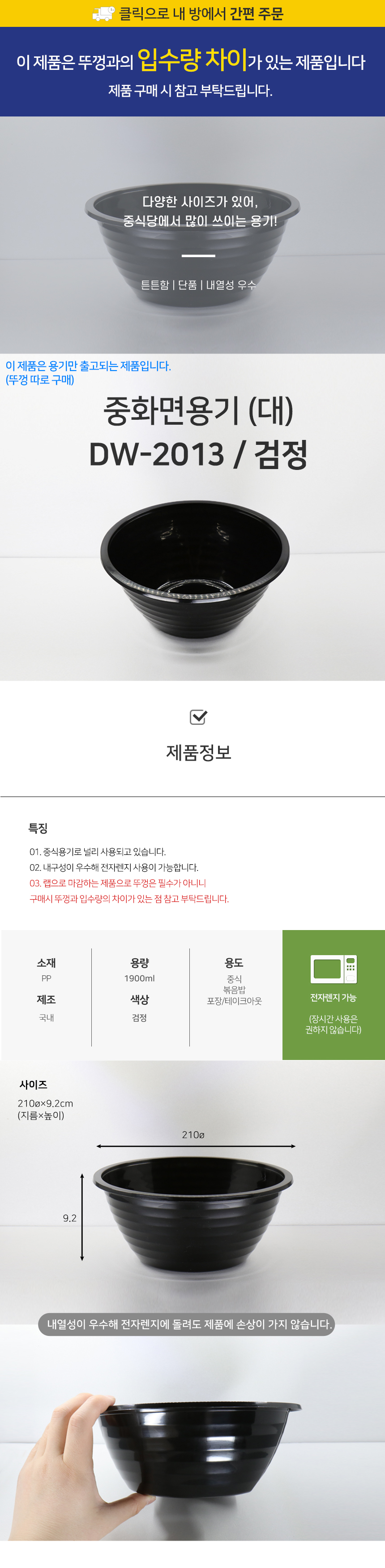 중화면용기 대 DW-2013 블랙 1박스(450개)