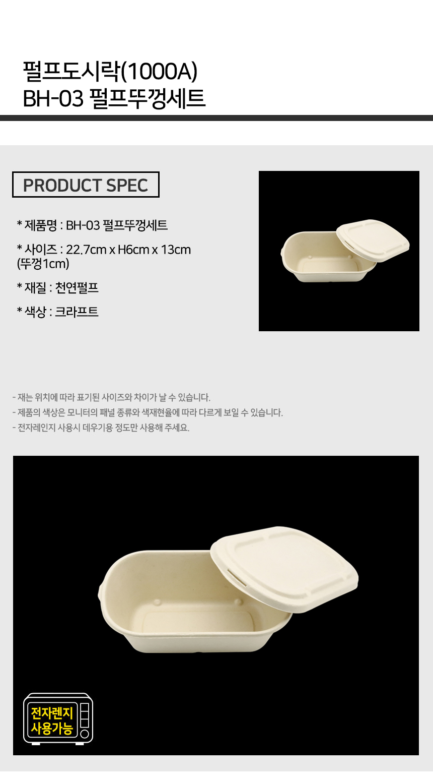 펄프 도시락 1000A 용기+뚜껑 세트 1박스 (500EA)