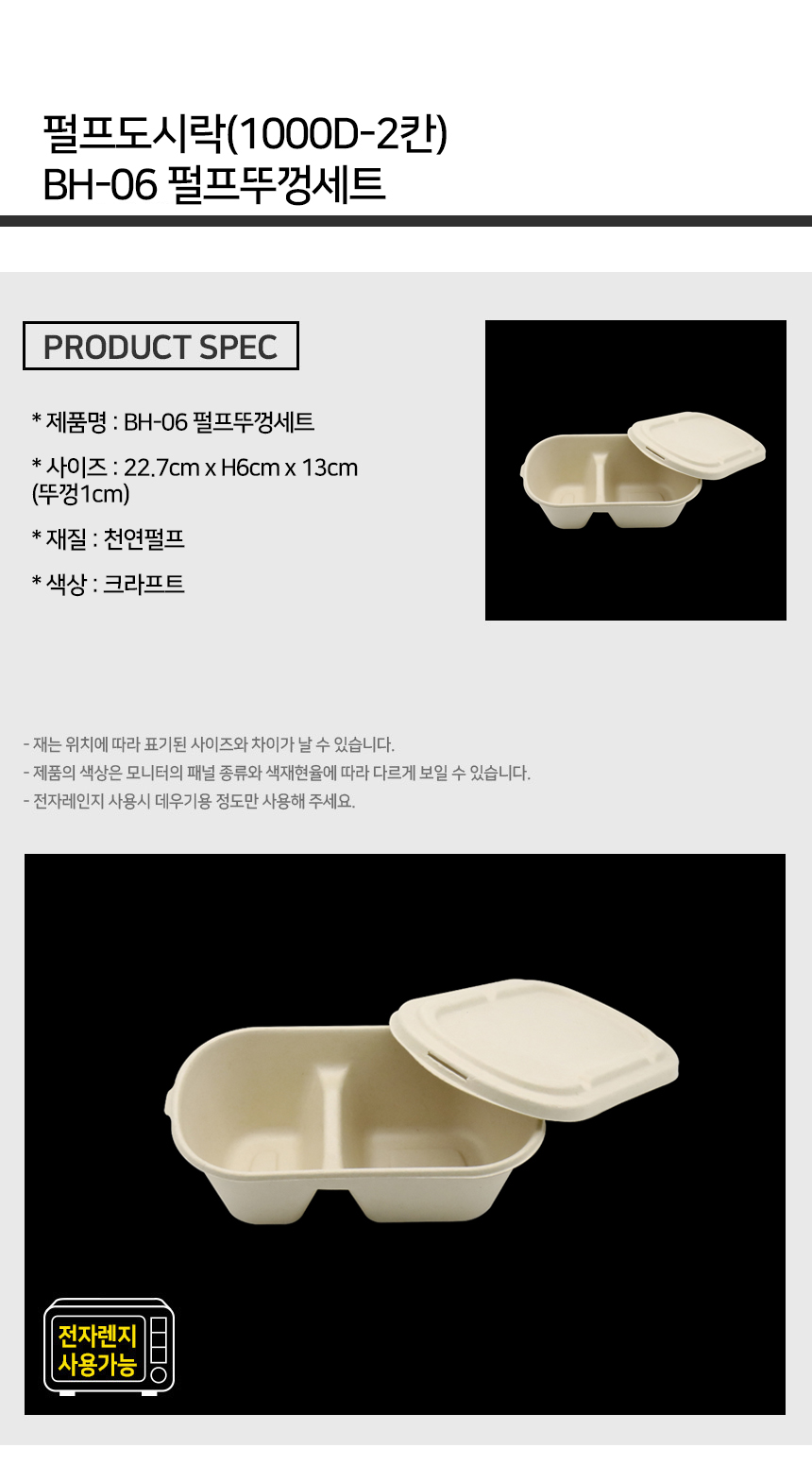 펄프 도시락 1000D 2칸 용기+뚜껑 세트 1박스 (500EA)