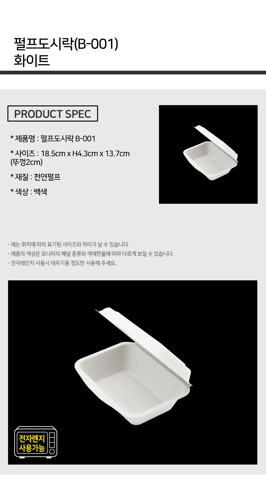 펄프 도시락용기 B-001 화이트 1박스 (500EA)