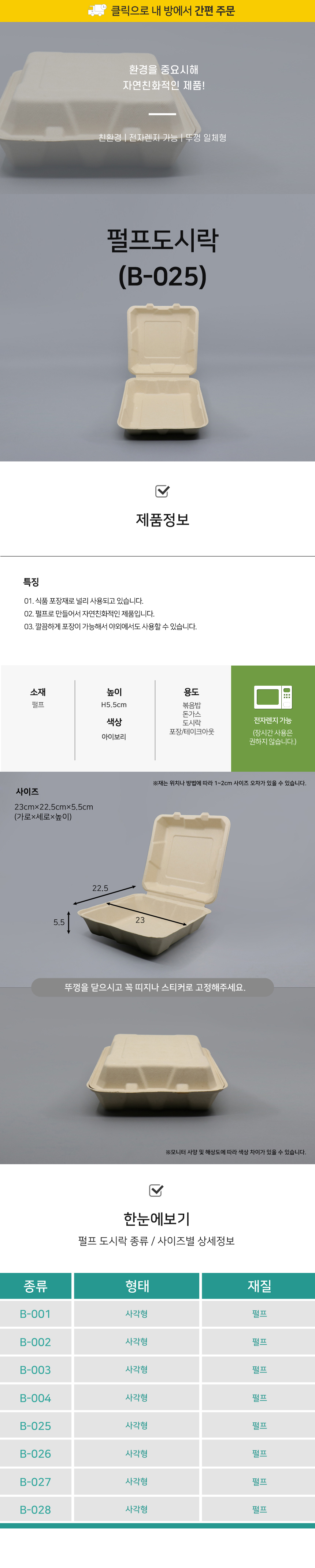펄프 도시락용기 B-025 크라프트 1박스 (200EA)