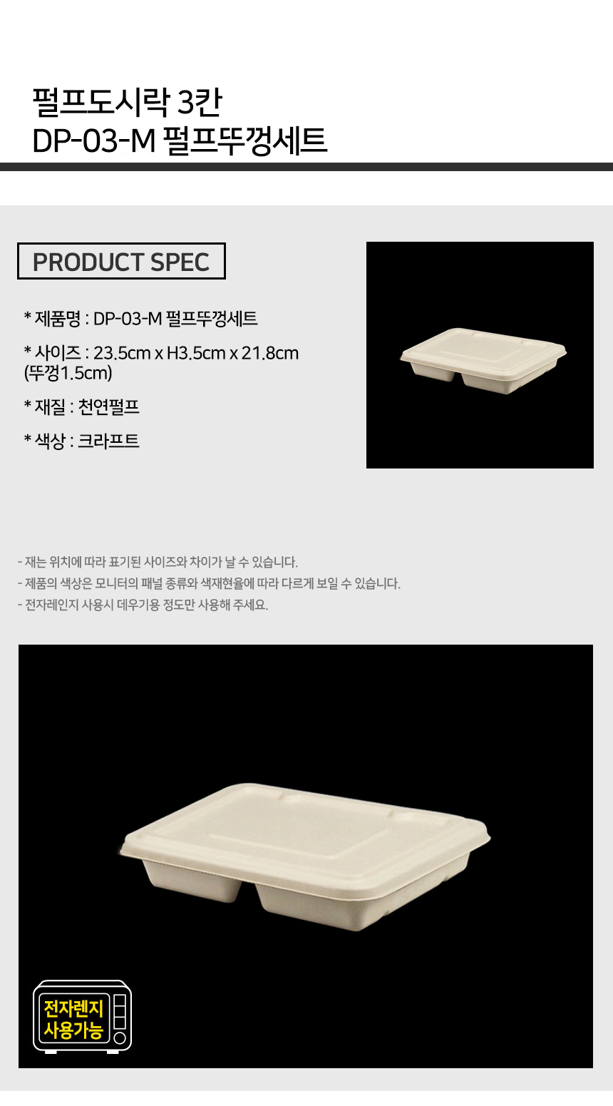 펄프 도시락 3칸 용기+뚜껑 세트 DP-03-M 1박스 (300EA)