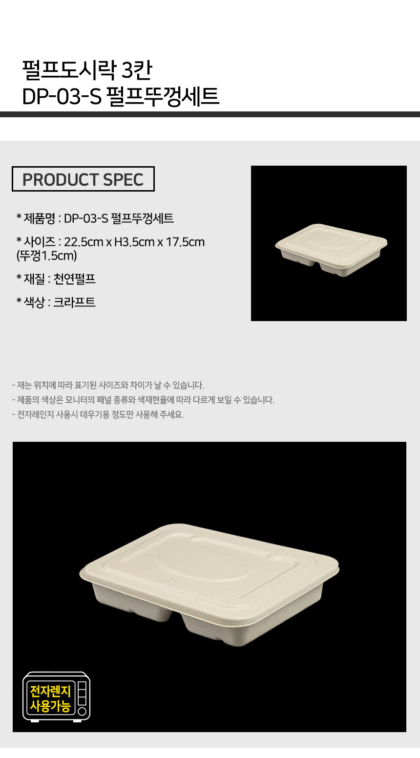 펄프 도시락 3칸 용기+뚜껑 세트 DP-03-S 1박스 (400EA)