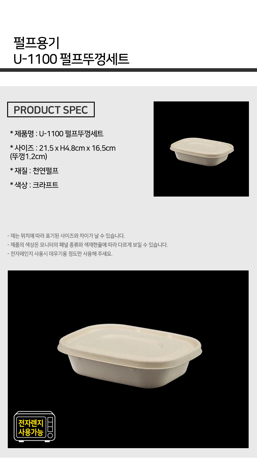 펄프용기 U-1100 용기+뚜껑 세트 1박스 (400EA)