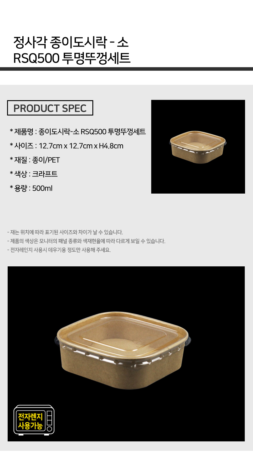 정사각 종이도시락+투명뚜껑 세트 소 RSQ500 1박스(300개)