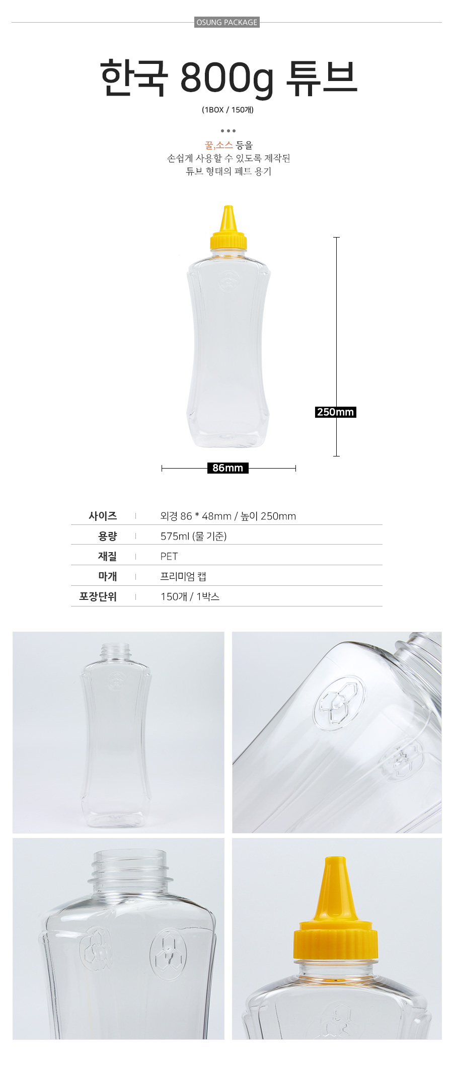 한국 800g 페트튜브 1박스(150개) 꿀튜브 꿀용기