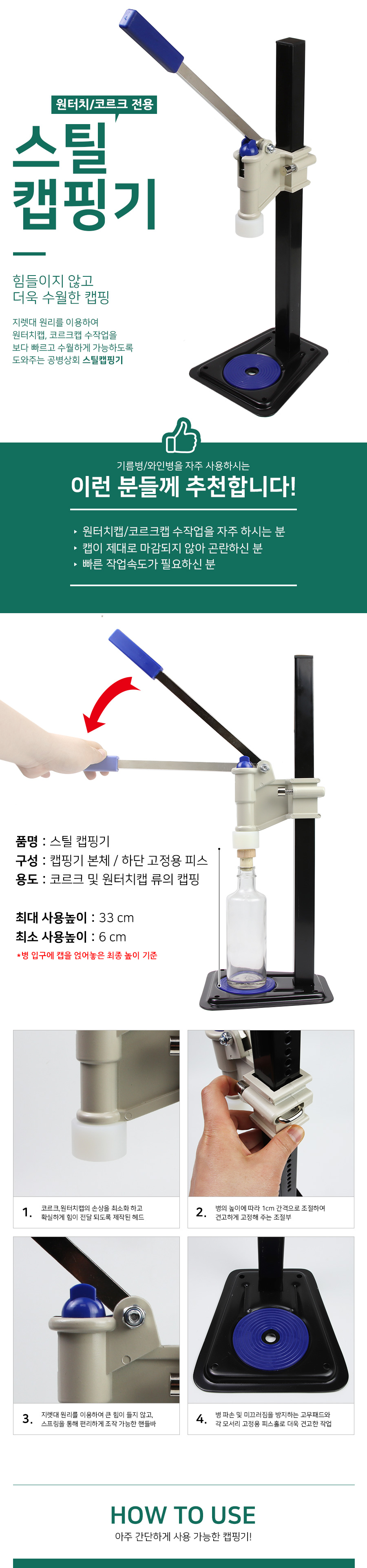 원터치캡/코르크 수동 캡핑기