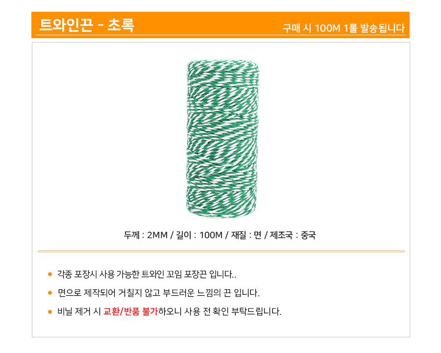 트와인끈 초록 1롤 (2mm*100m) 면끈 꼬임끈 포장끈