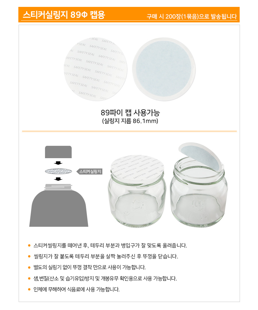 89파이 캡용 스티커실링지 200장