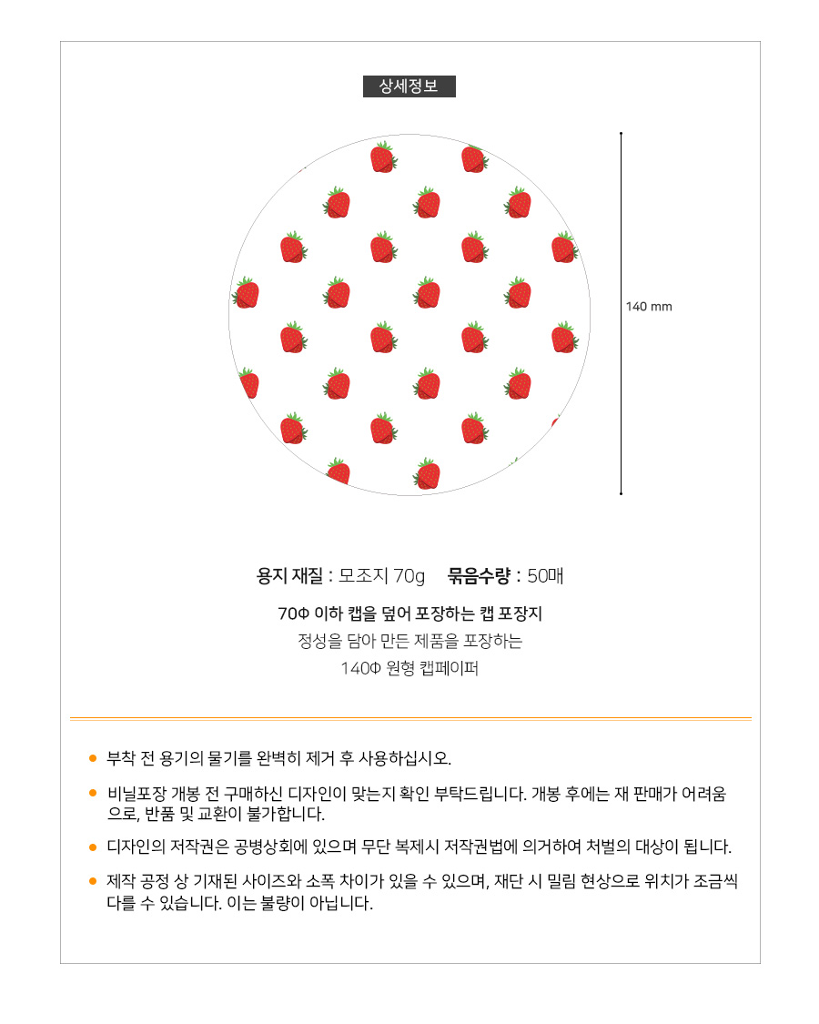 CP05 스트로베리 캡페이퍼/캡포장지 (50장) 뚜껑포장 도일리페이퍼