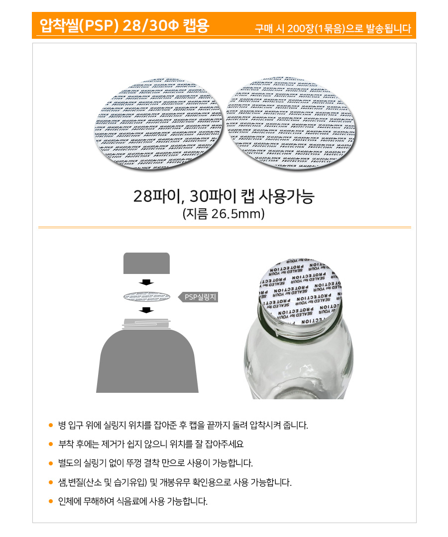 28파이,30파이 캡용 압착씰(PSP) 200장