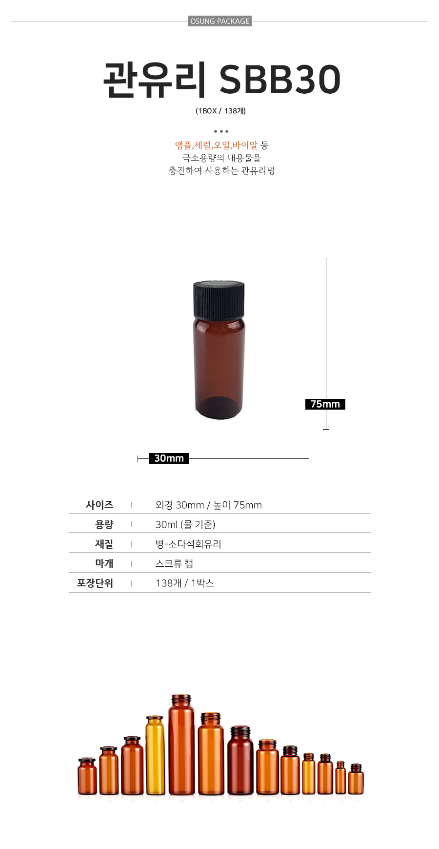 SBB30 갈색 관유리 1박스(138개) 30ml 바이알 앰플병