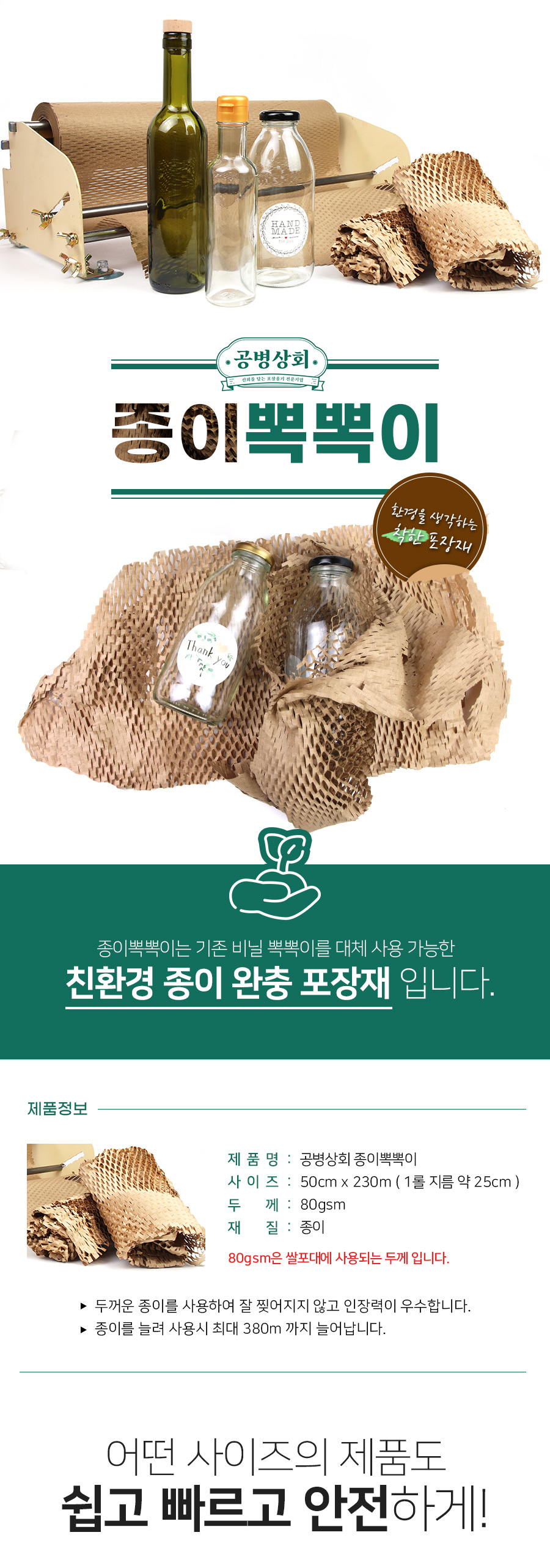 친환경 종이뽁뽁이 완충재 1롤 (50cm*230m) 포장지 스타핑지