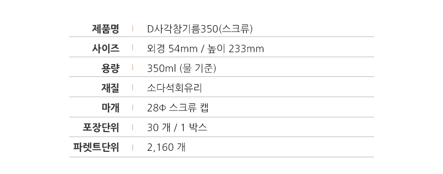 D사각참기름350(스크류) (1파렛트 / 2160개)
