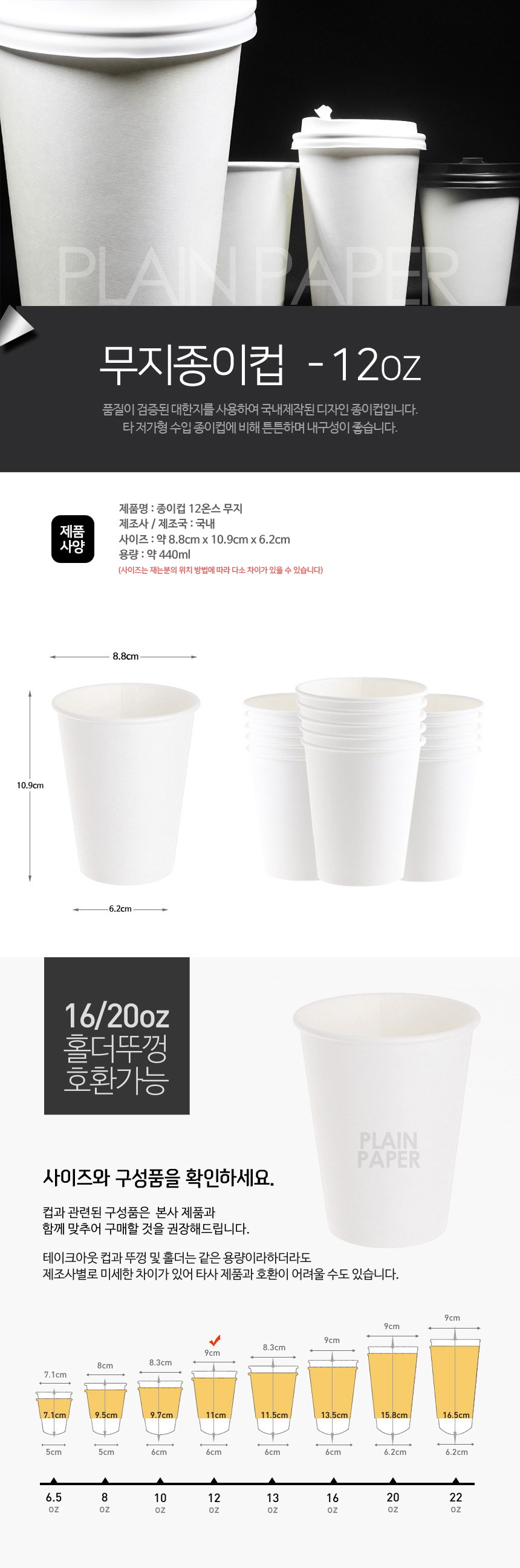 12온스 무지 종이컵 테이크아웃컵 1박스(1000개)